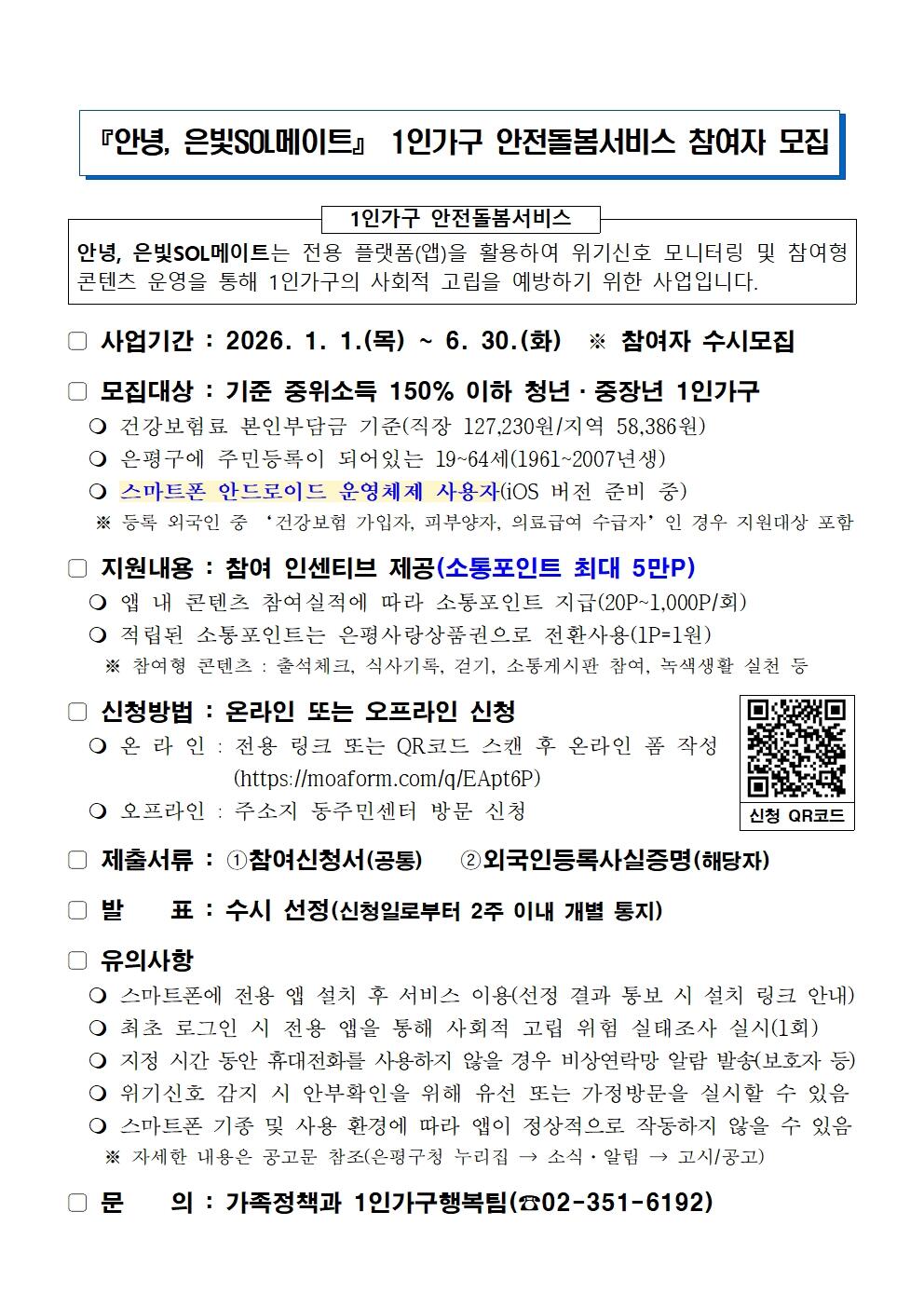 안녕하세요~ 은평구에서 진행하는 1인가구 안전돌봄서비스 ‘안녕, 은빛SOL메이트’를 소개합니다~!