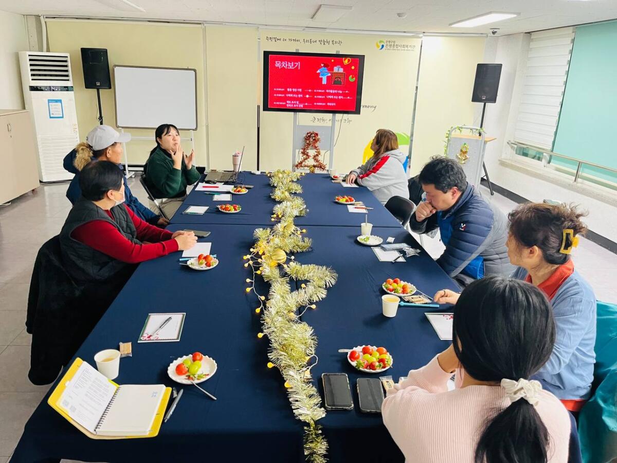 사례관리팀에서는 12월 23일, 한 해를 마무리하는 송년회를 진행했습니다.송년회에서는 지난 한 해를 돌아보며 좋았던 순간들, 자가활동약 활용, 소감을 나누는 시간을 가졌습니다. 프로그램을 통해 느꼈던 변화와 기억에 남는 순간들을 이야기하며 서로의 마음을 공감하고 응원하는 뜻깊은 시간이었습니다.