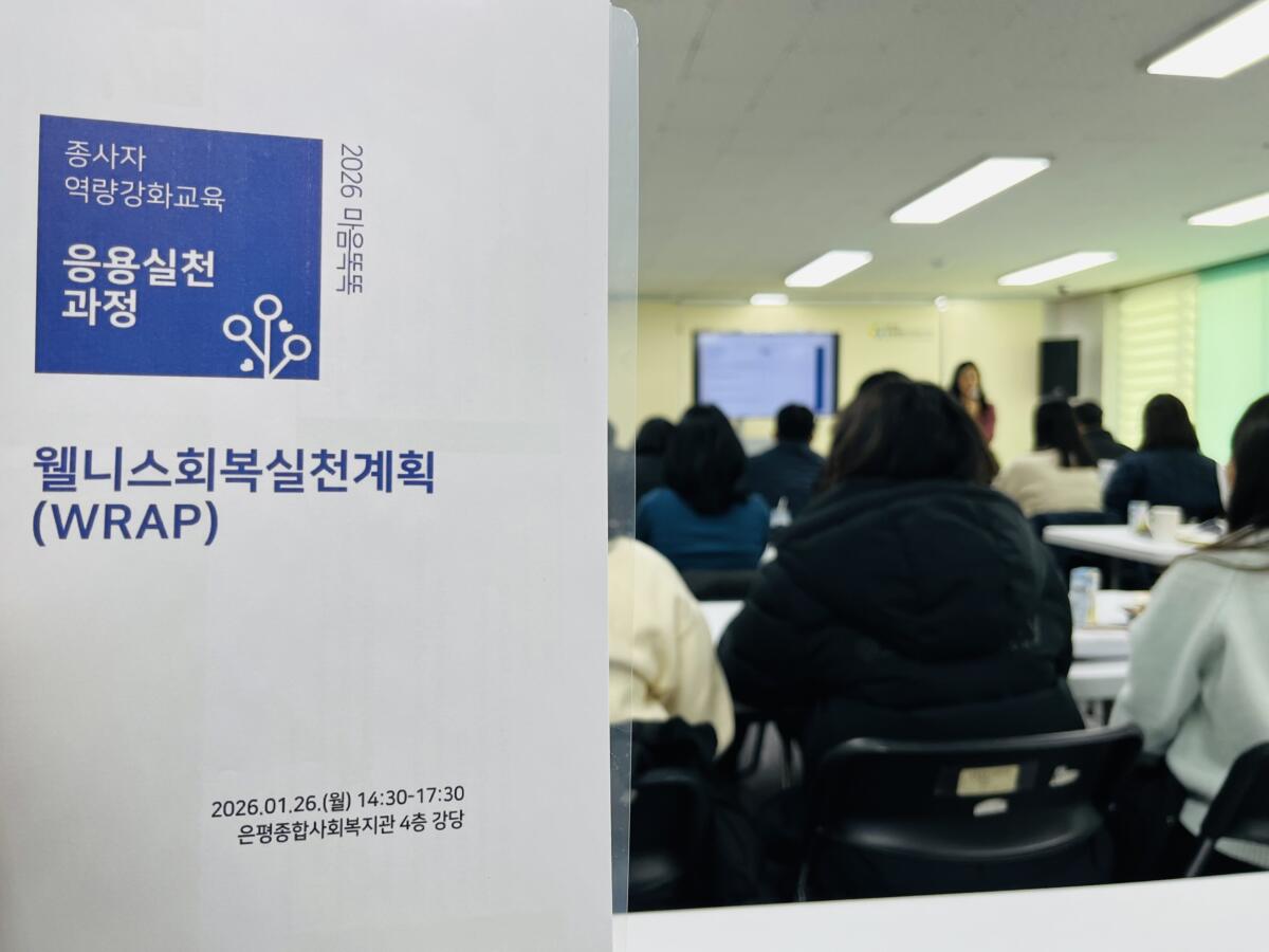 1차 교육에는 29명의 직원들이 참여하였으며, 정신 건강 문제나 일상적인 어려움을 스스로 관리하고 건강한 상태를 유지하기 위한 자기 주도형 회복 도구인 ‘웰니스 회복 실천 계획(Wellness Recovery Action Plan, WRAP)’ 소개와 더불어 이에 대한 교육과 훈련으로 진행하였습니다.