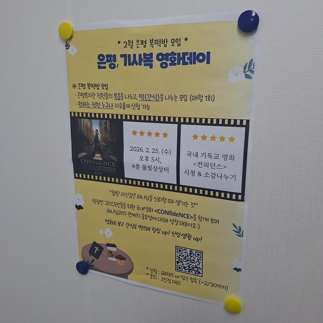 이번 2월에는 직장인 기독교인들을 위한 국내영화 <CONfideNCE> 시청 후 각자의 소감과 적용할 점을 나누었습니다.