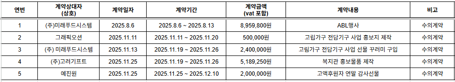 다음과 같이 2025년 하반기 수의계약체결 내역을 공개합니다.